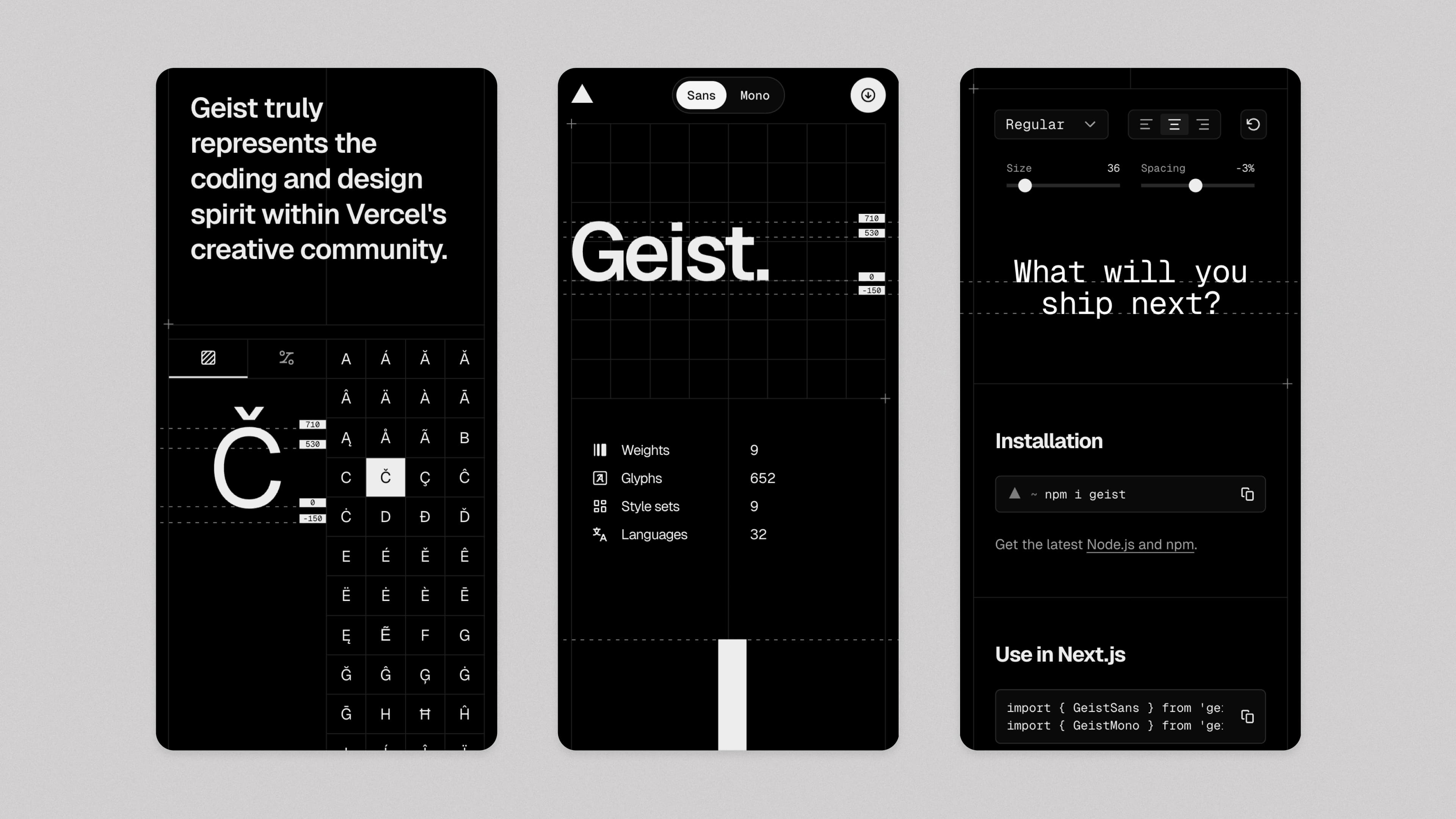 Geist was meticulously designed and developed by basement in collaboration with Vercel, for our dev community. Crafted for clarity and performance, Geist adapts to all screen sizes, making your designs timeless and scalable. Geist ensures a seamless experience across products, reinforcing Vercel’s identity at every touchpoint.